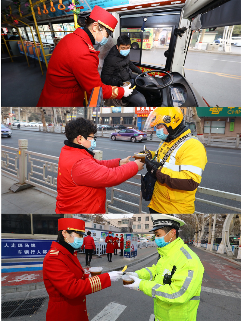 在臘八粥派發(fā)現(xiàn)場(chǎng),商場(chǎng)部分志愿者又化身成暖心外賣(mài)員,將一碗碗熱粥送到民警、外賣(mài)小哥、公交車(chē)司機(jī)的手中,讓他們?cè)诤涠?/span>日感受到來(lái)自平原大家庭的溫暖。