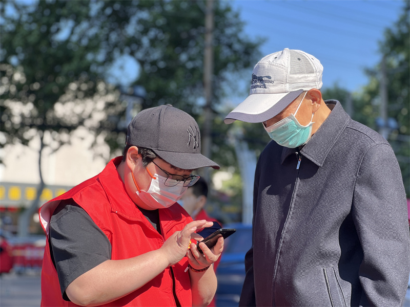 “我來配合你貼試管碼吧,你稍微休息一下!”面對社區(qū)工作人員,志愿者一個暖心舉動把關心傳遞。
