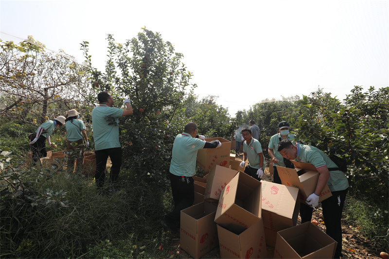 了解到這個(gè)因病致貧家庭背后自強(qiáng)不息的故事后,朱嵐嵐深受觸動(dòng)和感動(dòng),決心要幫李香萍一家盡快走出困境,也要引導(dǎo)商場(chǎng)全員和社會(huì)上更多的人學(xué)習(xí)她們一家自強(qiáng)不息、與困難頑強(qiáng)作斗爭(zhēng)的精神。于是,便在2021年9月蘋果成熟后,將主題黨日活動(dòng)直接開到了她家的果園里,從采摘到銷售全部兜底,先后兩次組織商場(chǎng)黨團(tuán)員、志愿者進(jìn)行愛心采摘,并將24000多斤蘋果以愛心捐贈(zèng)、號(hào)召員工內(nèi)購(gòu)、商場(chǎng)超市促銷等方式進(jìn)行消化。