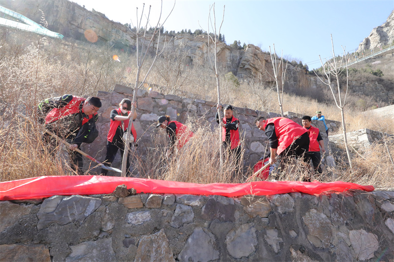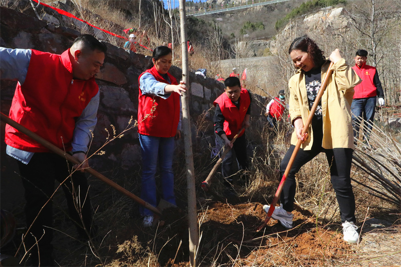 春風(fēng)動春心,流目矚山林。3月9日的牧野大地草長鶯飛,樹木抽芽,商場黨委書記、總經(jīng)理朱嵐嵐在眾平原家人的歡呼聲中,帶領(lǐng)近百名黨團員志愿者在南太行東南隅的跑馬嶺地質(zhì)公園開啟植樹之行,這是23年來,商場每年與春天不變的約定。