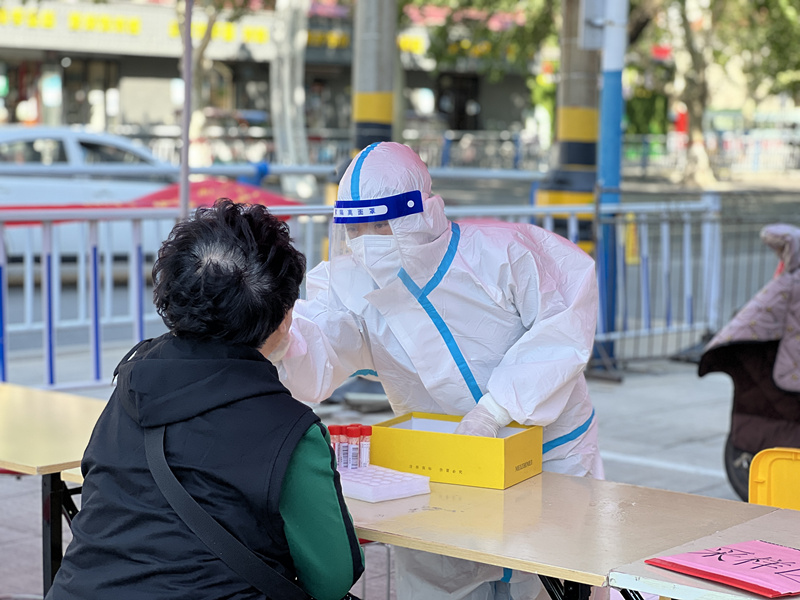 在這兩天的全員核檢中,商場醫(yī)務室副部長齊永濤帶領科室醫(yī)護人員楊贊麗聞“疫”而動,加入“大白”隊伍,為全市人民進行檢測采樣服務。