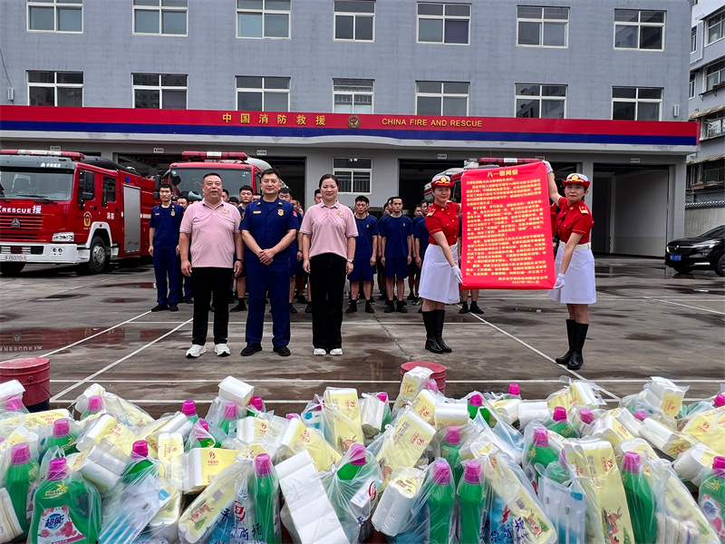 每逢“八一”到來之際,商場都會前往消防救援大隊(duì)看望消防隊(duì)員,今年也不例外。這次慰問,朱總偕領(lǐng)導(dǎo)班子成員、保衛(wèi)管理部人員,與衛(wèi)濱區(qū)婦聯(lián)主席原曉陽一同前往,為一直奮戰(zhàn)在各類救援一線的消防隊(duì)員送來了飽含深情的慰問信和洗衣液、衛(wèi)生紙、牙刷、肥皂、洗潔精等生活必需品。