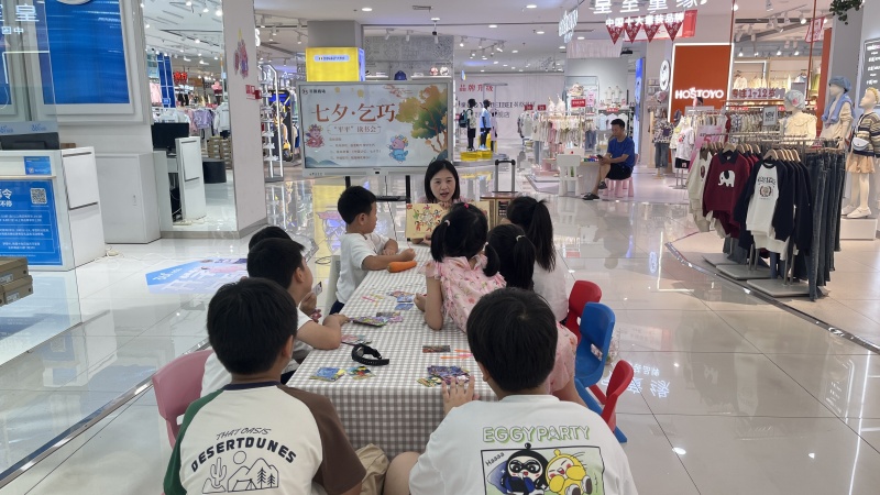 八月,商場持續(xù)開展兒童暑期讀書會。圖為七夕節(jié)當(dāng)天的“七夕·乞巧”讀書會,用趣味閱讀、民俗體驗、手工DIY的形式讓孩子們了解中國傳統(tǒng)節(jié)日,愛上中國文化。