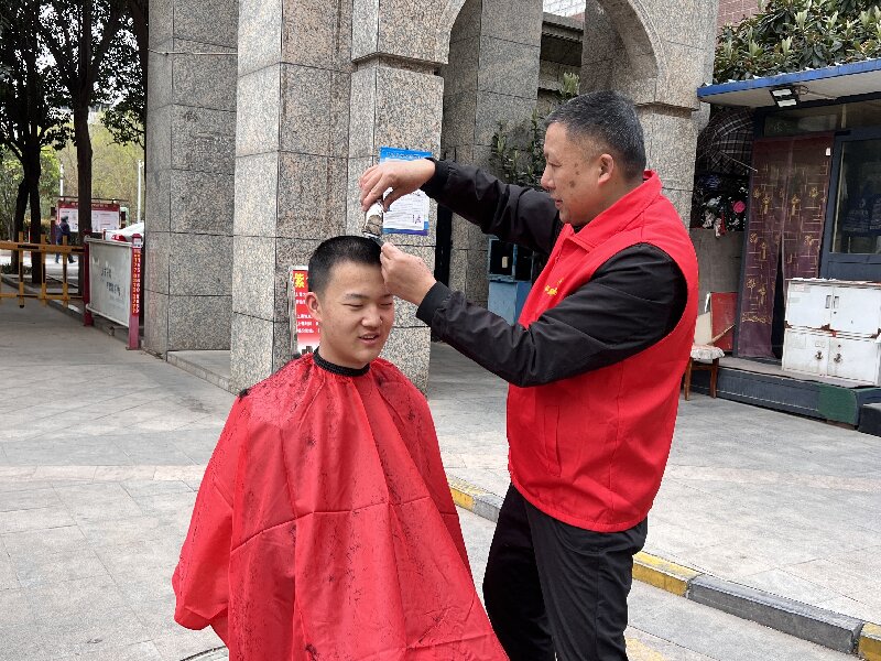 活動現(xiàn)場,同樣受居民熱捧的理發(fā)區(qū)也忙得不可開交。老人、小孩絡(luò)繹不絕。“師傅,這發(fā)型剪得精神!”“比我去理發(fā)店剪的還細致!”……一上午的時間,志愿者查道紅自拿起手中的推刀,便一刻沒有停歇過,在他嫻熟的操作中,16位居民面貌煥然一新。