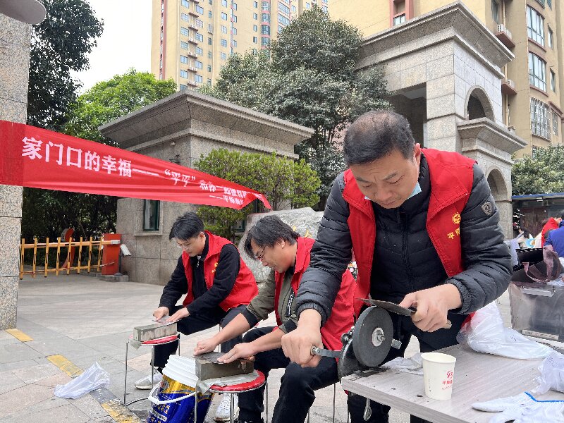 為了減少居民的等待時間,磨刀區(qū)的志愿者細心地將居民的菜刀分類裝袋收集,并送上取貨號牌,叮囑他們稍候來取。見狀,一位大爺開心地說:“你們想得真周到,正好我去買菜,回來拿著磨好的刀回家做飯,啥事兒不耽誤,真不錯!”居民們的贊譽激起了志愿者們的干勁,大家一鼓作氣,在叮當(dāng)作響的金屬聲中,70余把菜刀重獲鋒利??吹阶约旱膽?zhàn)果,負責(zé)磨刀的志愿者楊磊、張佳偉、宋健格外有成就感,再看到每個人被磨刀石泥漿濺臟的鞋子、衣服和臉頰,他們又禁不住的哈哈大笑。